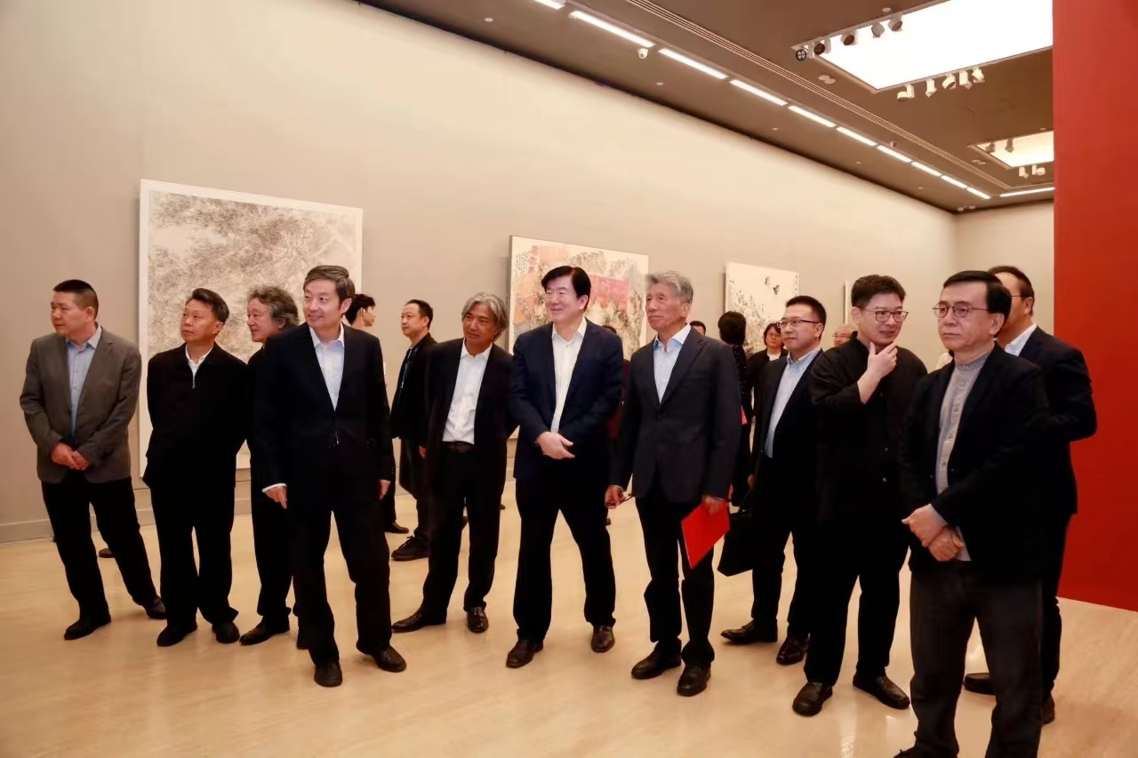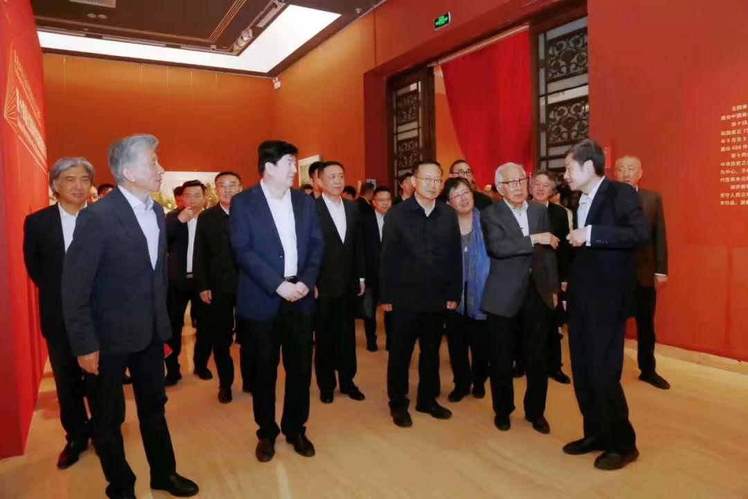 中央宣传部副部长、文化和旅游部部长孙业礼出席开幕式并宣布展览开幕。中国文联党组书记、副主席李屹,中国作协党组书记、副主席张宏森,文化和旅游部党组成员、副部长卢映川,中国文联党组成员、副主席诸迪,全国政协副秘书长、中国美术馆馆长吴为山,中国国家博物馆馆长高政,中国文联党组成员、书记处书记、中国美协副主席高世名,中国文联党组成员、书记处书记谢力,中国美协主席范迪安,中宣部文艺局局长陈名杰,中国美协分党组书记、驻会副主席马锋辉,中央美术学院院长林茂,文化和旅游部办公厅副主任张剑,财务司司长王明亮,艺术司司长明文军、副司长何亚文,中国文联办公厅副主任胡英军,机关党委副书记、机关纪委书记郑旭东,国际联络部主任于海琳,理论研究室主任周由强,离退休干部局副局长李华,军委政治工作部宣传局文化环境建设保障室主任马登东,中国美协副主席王来文、刘万鸣、林蓝、庞茂琨、贾广健,中国美协分党组成员、秘书长王平、副秘书长章云,中国美术馆党委书记安远远、副馆长潘义奎,老艺术家代表靳尚谊、孙景波、代大权等出席开幕式,李屹、卢映川、吴为山、范迪安致辞,诸迪主持开幕式。